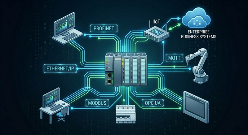 Trend paling ketara pada tahun 2026 ialah penumpuan OT (Teknologi Operasi) dan IT (Teknologi Maklumat). Di sinilah **IIoT** memainkan peranan. Sistem **PLC** moden tidak lagi terasing. Melalui protokol seperti OPC UA dan MQTT, **PLC** kini boleh menstrim data prestasi masa nyata terus ke platform awan seperti AWS atau Azure.